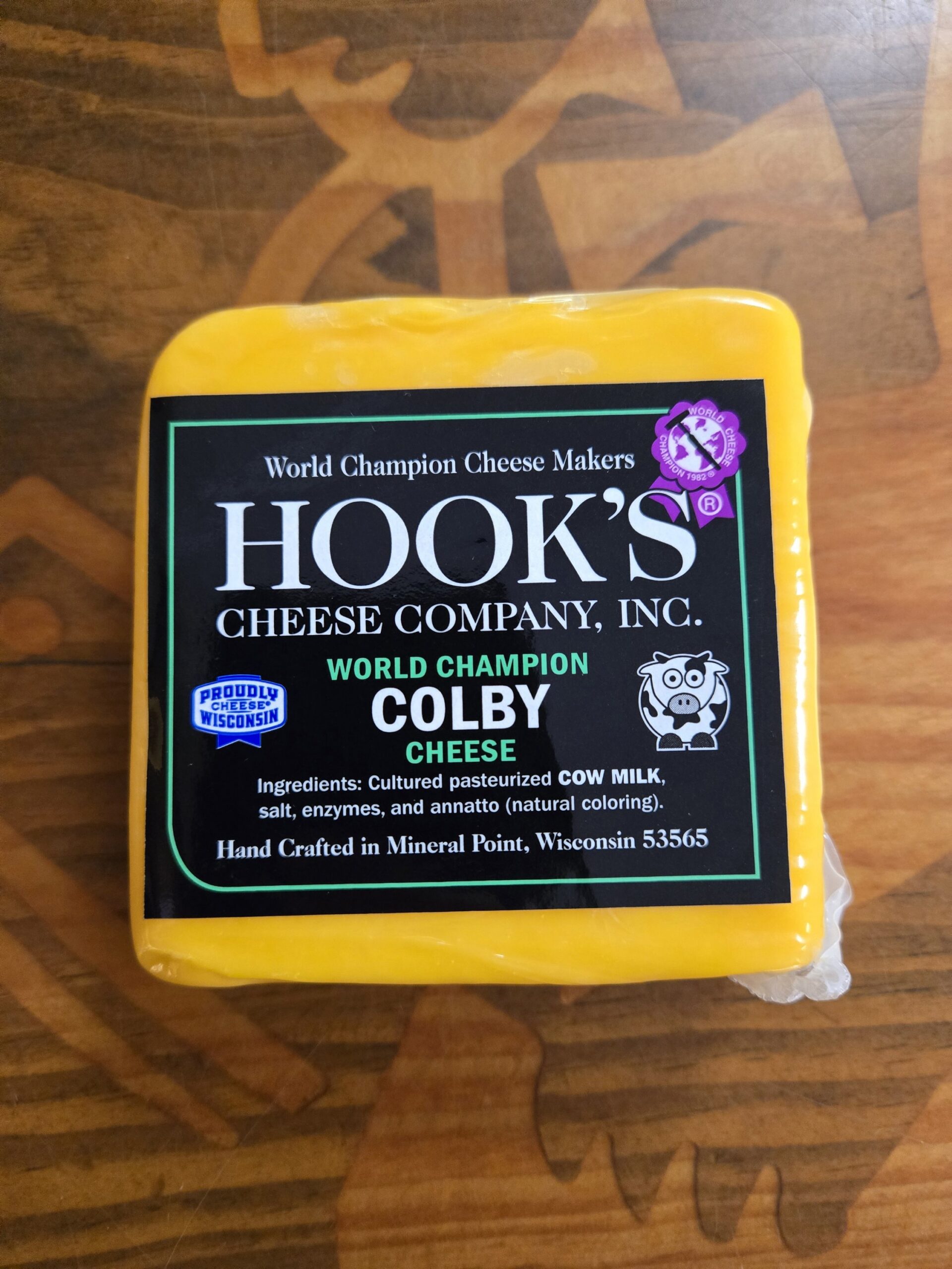 A firm, cow’s milk cheese that is tangy, sweet, and made in the traditional way that gives the cheese tiny openings and a sweeter flavor than cheddar. Hook’s Colby won the overall World Cheese Championship in 1982.